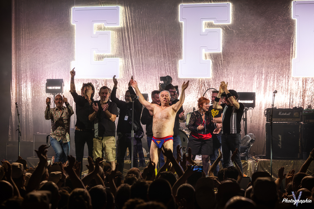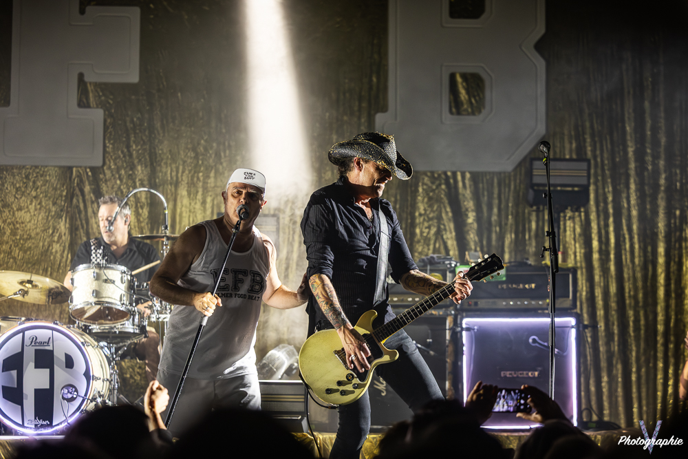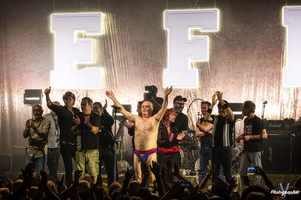 Le risque, avec ce genre de délire, est que la musique soit la grande perdante de l’histoire. Quiconque a tenté de retrouver son audition après un concert de Didier Super peut en témoigner : parfois, ça saigne. Avec EFB, il en est tout autrement car la mise en place est irréprochable. La rigolade, d’accord, mais avec sérieux ! Pas de solos approximatifs ni de voix cassées : chacun donne le meilleur de lui-même. Pour l’occasion, Keulu est de retour dans la formation et tout le monde semble extrêmement heureux de ces retrouvailles. À tel point que le groupe paraît avoir toutes les peines du monde à quitter la scène.