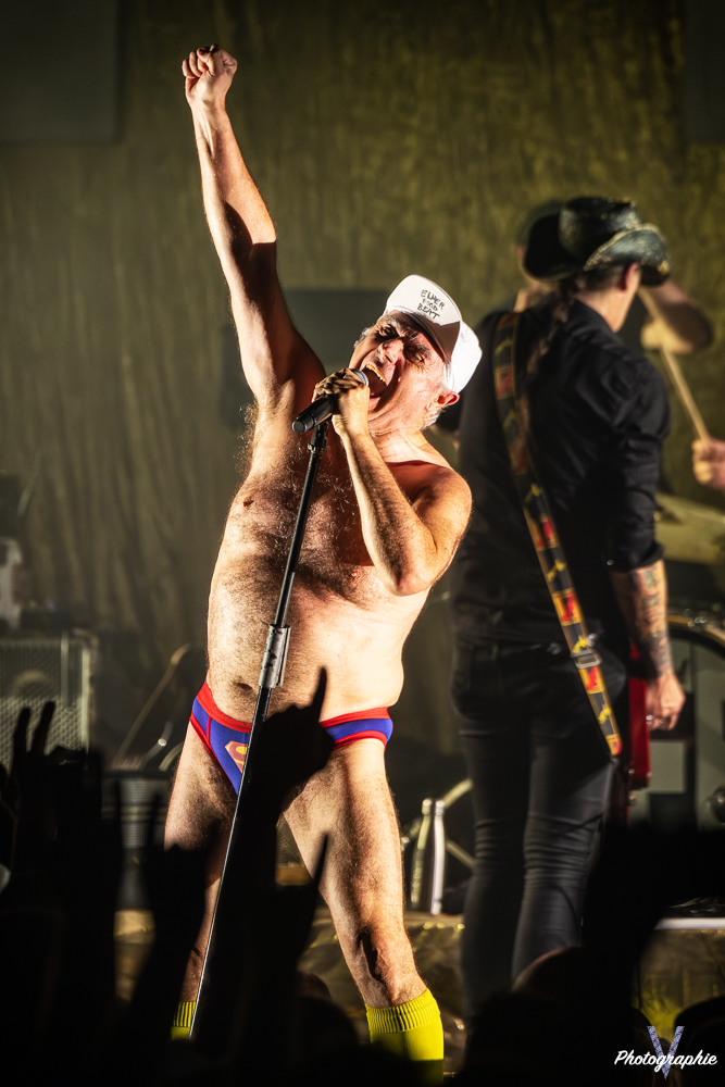 Dans la fosse, c’est l’éclate dès le premier titre. Les gens reprennent les paroles en chœur et commencent déjà à s’agiter. Il faut dire que le show démarre fort avec « L’Infirmière ». La bande jouera l’intégralité de l’album, agrémenté de titres issus d’une discographie un peu moins connue du grand public. Au total, 27 morceaux sont enchaînés : aux 12 titres du premier disque s’ajoutent 8 extraits du second, « Je vais encore dormir seul », le reste se répartissant sur les autres albums du groupe. La salle est comble…
