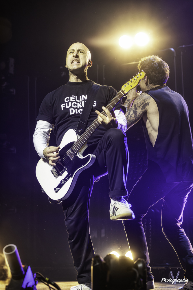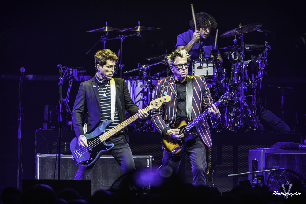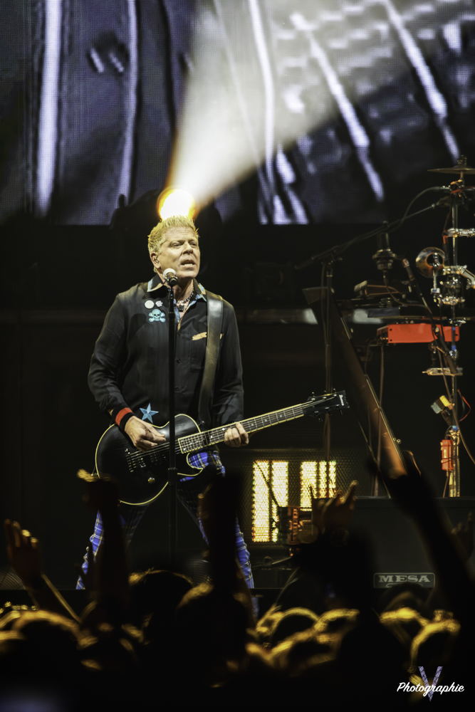 Bon, même si l’amuse-bouche était gouteux et que le chauffeur de salle façon animation de stade US fait bien son job pour faire passer le temps du changement de plateau, la fébrilité monte d’un cran en attendant les big boss du néo punk. Après un compte à rebours, ils ouvrent enfin le feu avec « Come out and play ». En un claquement de doigts, la salle se téléporte dans les 90’s et tout le monde rajeuni de 20 ans (certains disparaissent carrément, normal, ils n’étaient pas nés). La fosse s’anime d’un coup et tout le monde jump comme un seul homme. Il faudra attendre le quatrième titre pour entendre un extrait du dernier album en date et vérifier que ce nouveau matériel passe bien l’épreuve du live, il s’agit du titre « Looking out for #1 ».